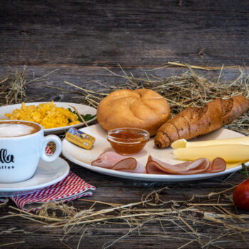Frühstück klein inkl. Chickis Café, Tee oder Kakao Ein Glass 0,2 Orangensaft, Frisch gebackene „Kärntner Semmel“ mit Butter, Marillen/Erdbeer-Marmelade oder Schinken und Käse. AllergeneAllergene folgen Das könnte dir auch noch…